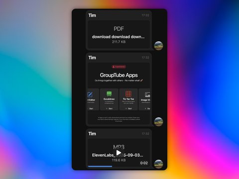 GroupTube 1.8 makes it possible to upload custom profile pictures, both for accounts and groups. You can now also send files via chat!